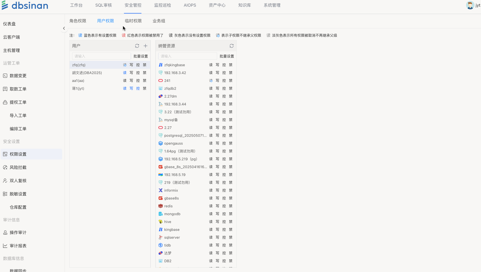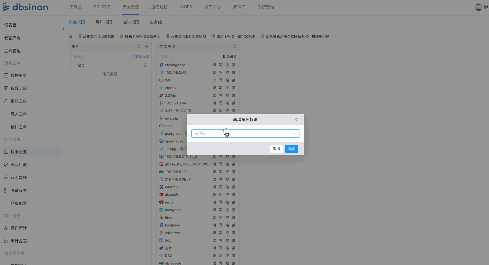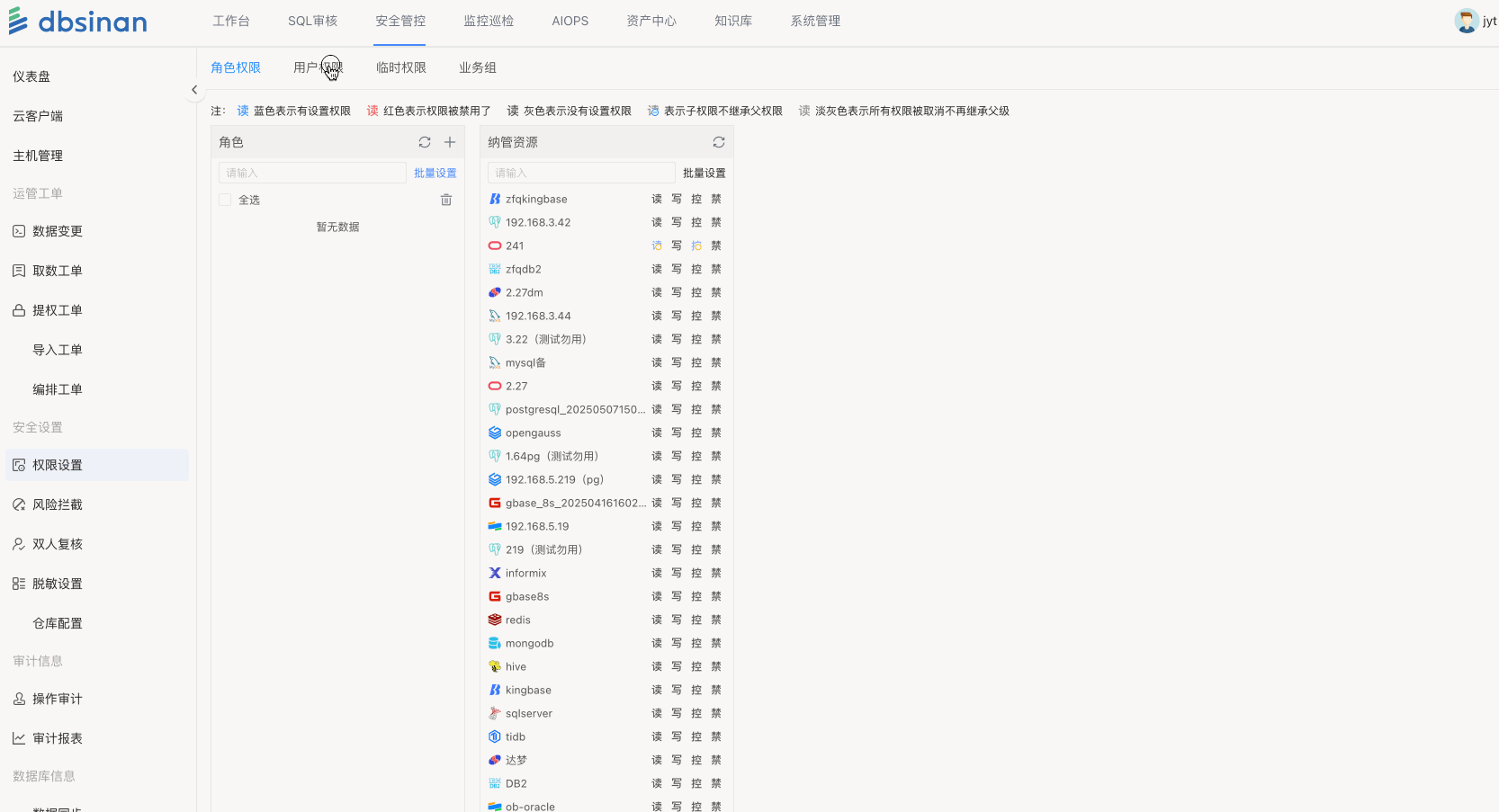 - 该角色下的用户将自动获得所在项目组里所有数据库的对应权限