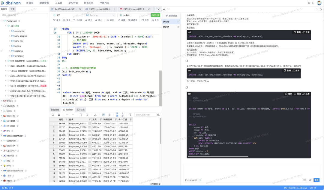本次升级性能上针对企业级数据库管理的核心痛点进行了全方位突破:通过SQL执行算法优化,解决了10万行以上复杂查询的性能瓶颈,使关键业务查询响应速度提升300%;全新的执行日志功能,精度记录了每一条SQL的全生命周期轨迹;并支持10万级日志的快速检索与分析;系统架构优化后轻松应对上千并发用户的稳定访问,并实现5000+数据库实例的纳管。现在,无论是数据检索还是页面加载,您都将体验到丝般顺滑的操作感受——曾经让人等待的页面卡顿已成为历史。
