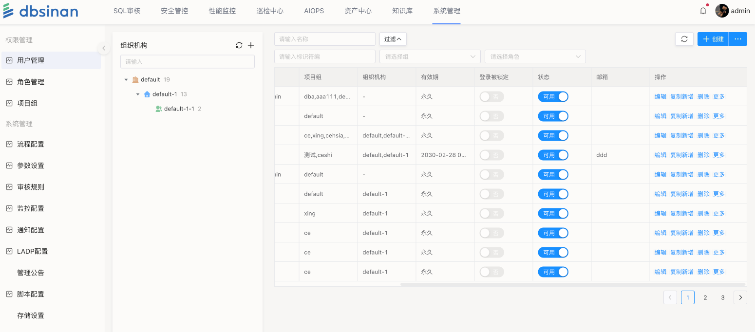 • 用户列表右侧为组织机构列表,详见组织机构管理